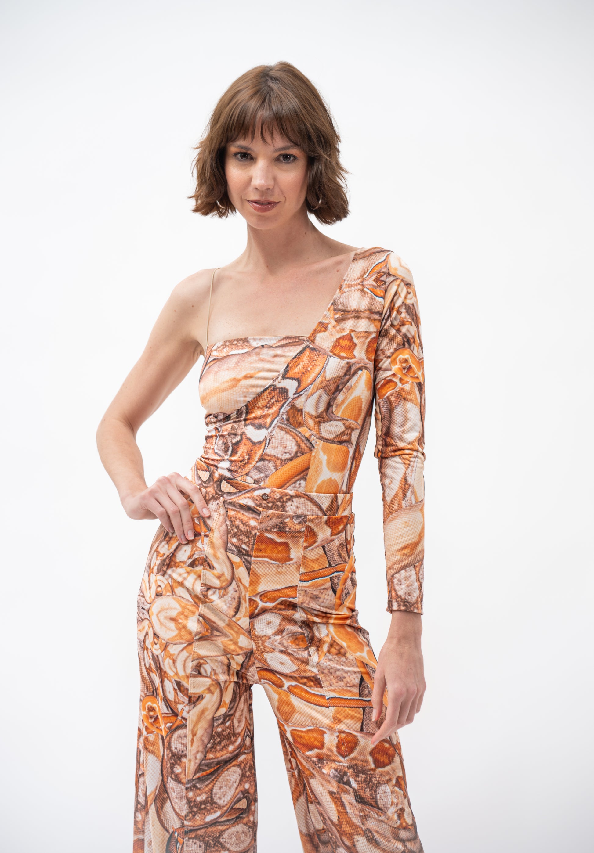 Primera versión de nuestro pantalón con estampado inspirado en la piel de la serpiente. Corte más ajustado al cuerpo para abrazar tus curvas con precisión. Disponible en dos variantes de print para que elijas cual vibra más contigo.